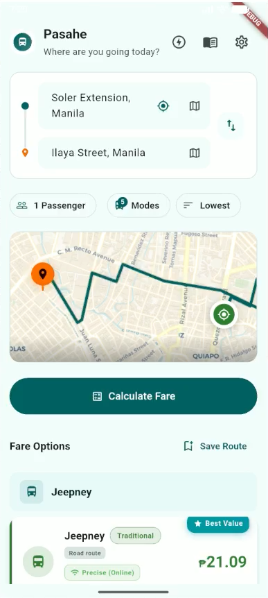 A cross-platform Flutter app that estimates public transportation fares across the Philippines. Supports 11+ transport modes including jeepney, bus, train, ferry, and more — with distance-based calculations via OSRM, offline map support, and passenger discounts for students, seniors, and PWDs.